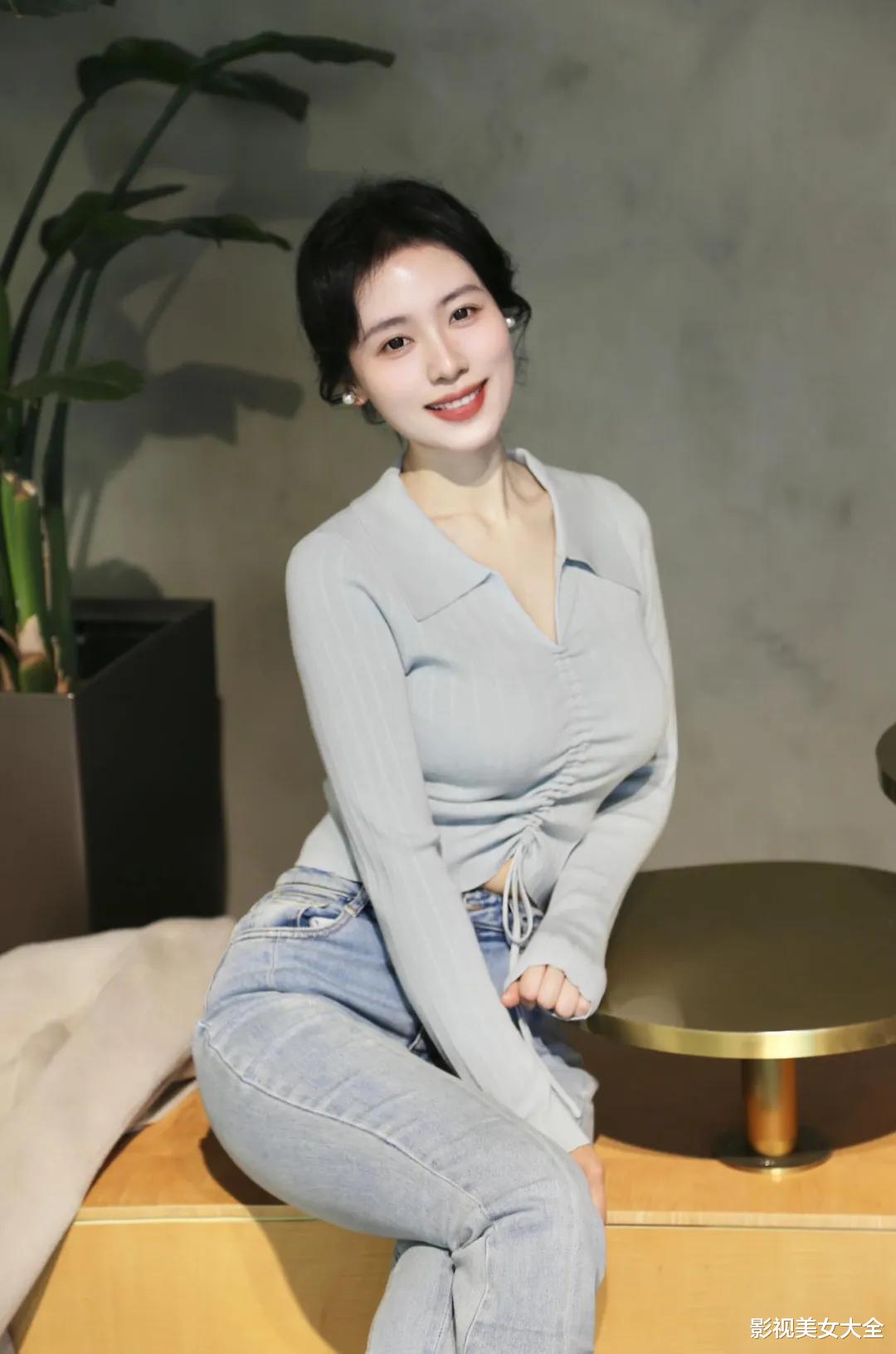翘起二郎腿,身体微微歪过去,用一只手支撑着。这个动作能把身材线条拉得更修长,牛仔裤的版型也会更突出。笑着看镜头就行,不用刻意凹造型,温柔又自然。