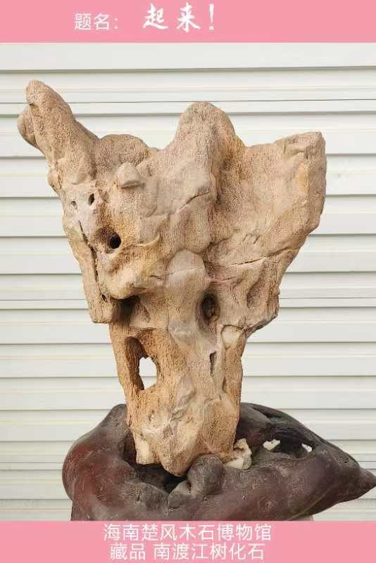 注:此石出自南渡江沙下20米,年愈亿年,长1.6米,厚0.8米,重约千斤。2020年曾应邀参加在国际会展中心举办的全球电动汽车展。