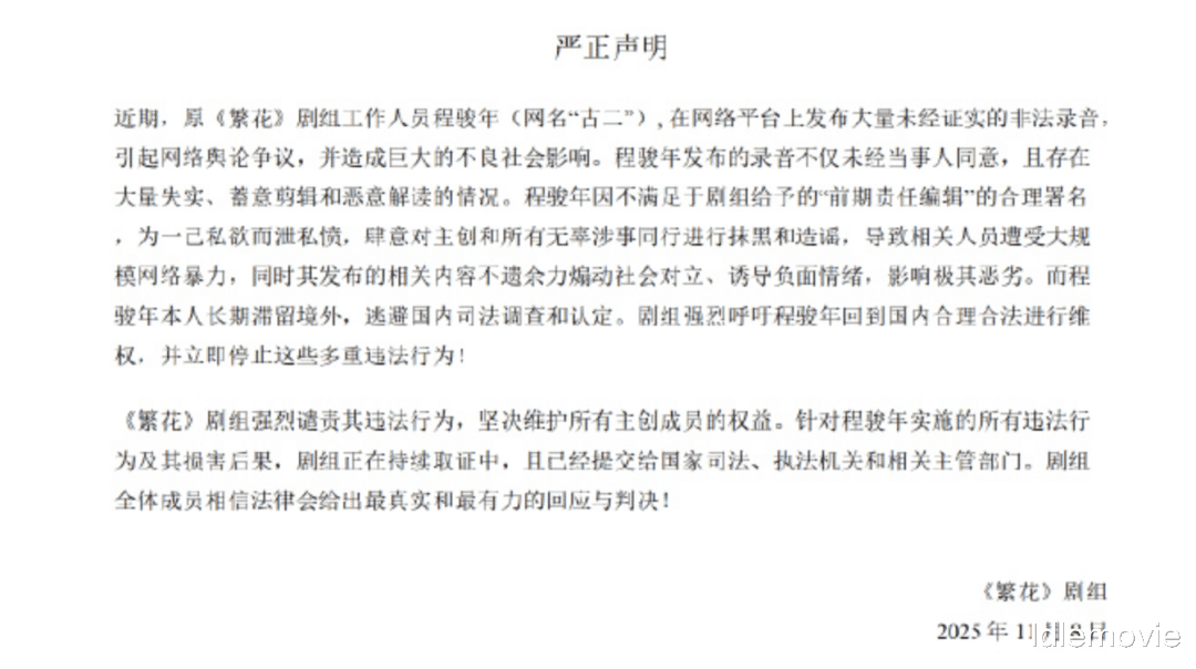 他们的这番言论小不了,最后肯定得有个结果,要么证明古二恶意剪辑,要么《繁花》系集体落马,没有中间缓冲地带。