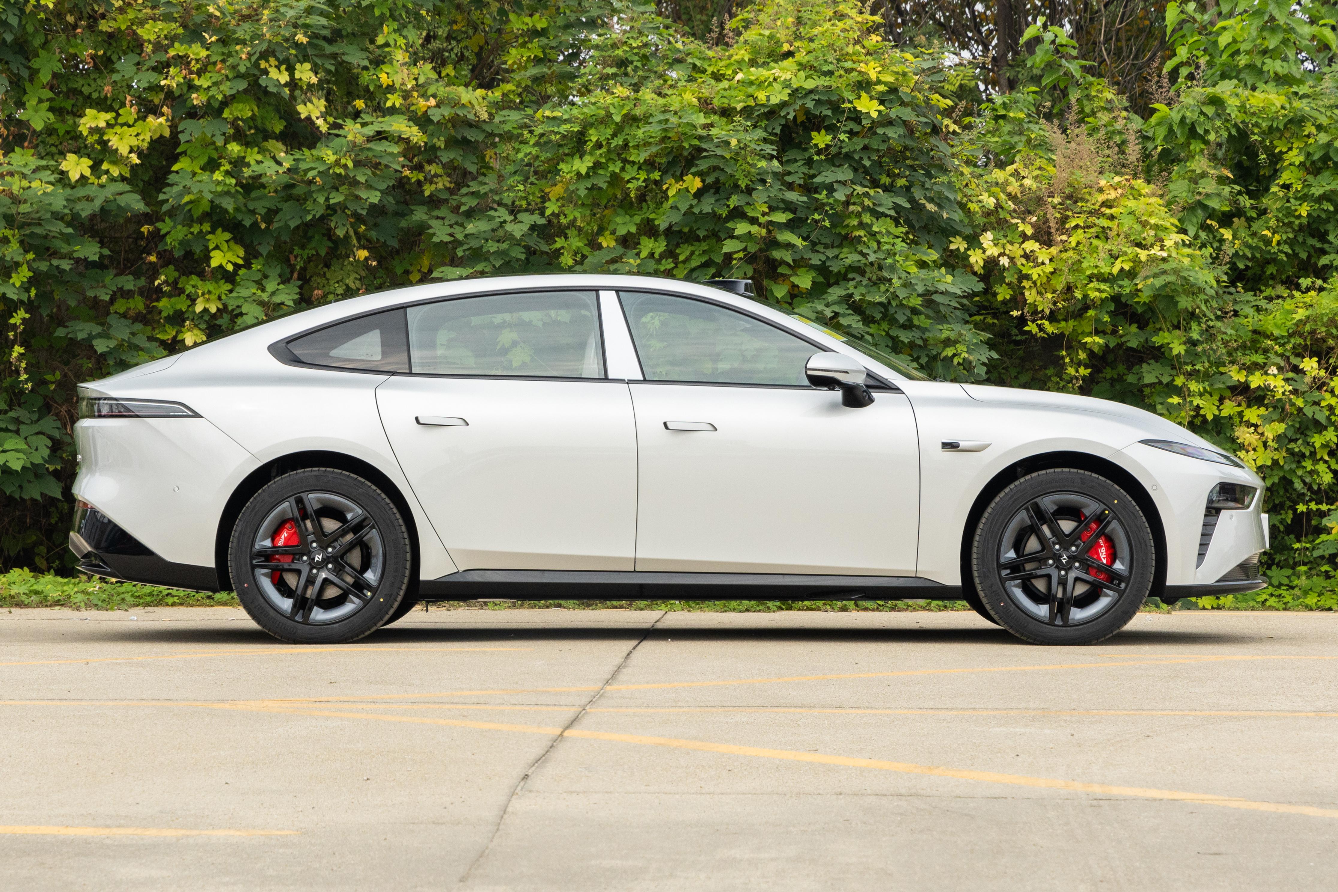 外观设计层面,该车秉持简约大气的设计理念,未采用夸张的造型元素,整体线条清爽利落,兼具耐看度与质感,越品越能感受到设计的细腻之处。车身尺寸表现扎实,车长4880mm、宽度1915mm,低趴的车身姿态搭配流畅的溜背线条,再辅以车尾微微上翘的小鸭尾设计,自然营造出温和的运动气息,侧面视觉呈现出蓄势待发的舒展感。值得一提的是,实车质感相较于图片呈现更为出众,车身线条的细腻层次与光影变化,难以通过屏幕完整传递,唯有近距离观察才能体会其设计的用心。