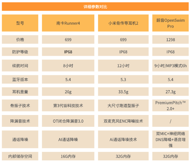 通过实际测试可以看到,这三款骨传导耳机各自有不同的优势与局限。小米骨传导耳机2日常使用体验良好,佩戴轻便,听歌足够满足基础需求,但在高强度运动或长时间游泳时稳固性略显不足,蓝牙偶尔会有轻微断连,游戏体验中也存在一定延迟感。韶音 OpenSwim Pro适合轻度运动和短时水下使用,佩戴舒适,音质中规中矩,但在连续剧烈运动或深水环境下稳定性有限,蓝牙连接和游戏延迟表现中等。南卡 Runner 4在各项测试中表现最全面,无论是音质、佩戴舒适度、防水性能还是蓝牙稳定性都非常出色,即使在长时间高强度运动或游泳场景下,也能保持稳定,游戏延迟几乎无感。总体来看,三款耳机各有所长,用户可根据自身使用场景和需求进行选择。