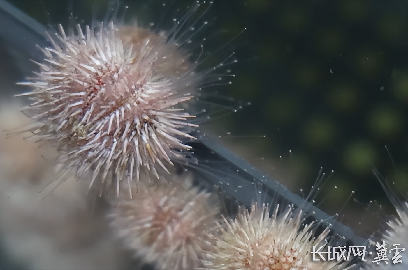 乐亭县隆伟海洋牧场有限公司海胆养殖基地的虾夷马粪海胆。乐亭县委宣传部 供图