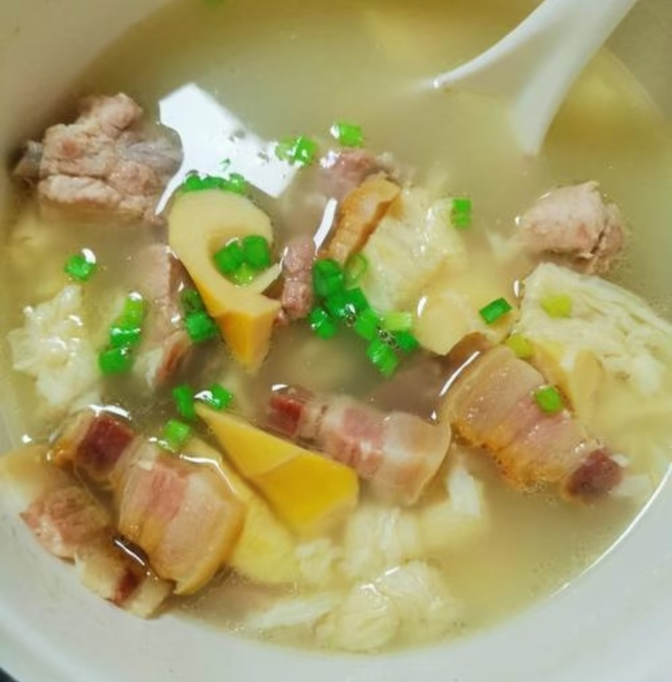 小贴士:如果买不到咸肉,可以用腊肉代替,但记得提前用温水浸泡2小时去咸;鲜笋切块后一定要焯水,否则会有涩味破坏整锅汤的清甜。