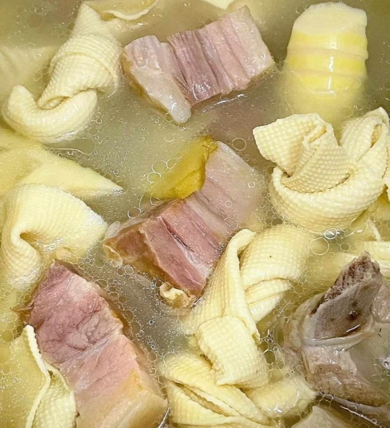 1. 预处理阶段(10分钟)• 咸肉切2cm厚块,鲜肉剁成大块,冷水下锅加姜片焯水,水开后煮3分钟捞出• 鲜笋剥壳后切滚刀块,另起锅烧水,水沸后下笋块煮2分钟(这一步是去涩关键!)• 百叶结用温水泡软备用(超市有现成的,手残党福音)