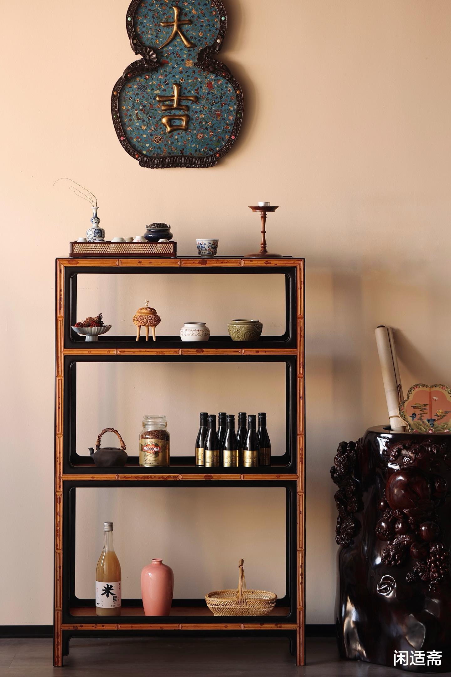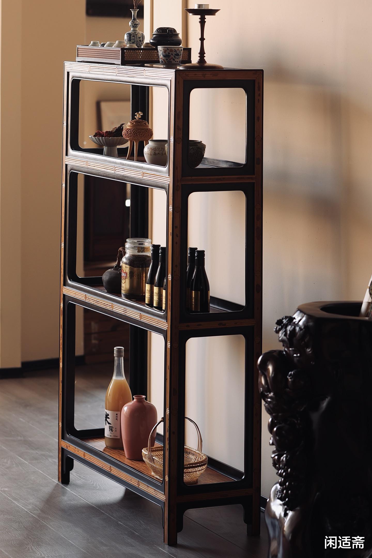 整器设计兼具灵活性与适配性,可单组摆放于小面积茶室,作为精致的茶器收纳架;更可两组并排使用,组成规整的“柜墙”,瞬间提升空间的古典雅韵,无论是陈列茶器、古玩,还是作为层架展示藏品,都极为得体,是茶室中“藏器于架,纳雅于室”的点睛之选。