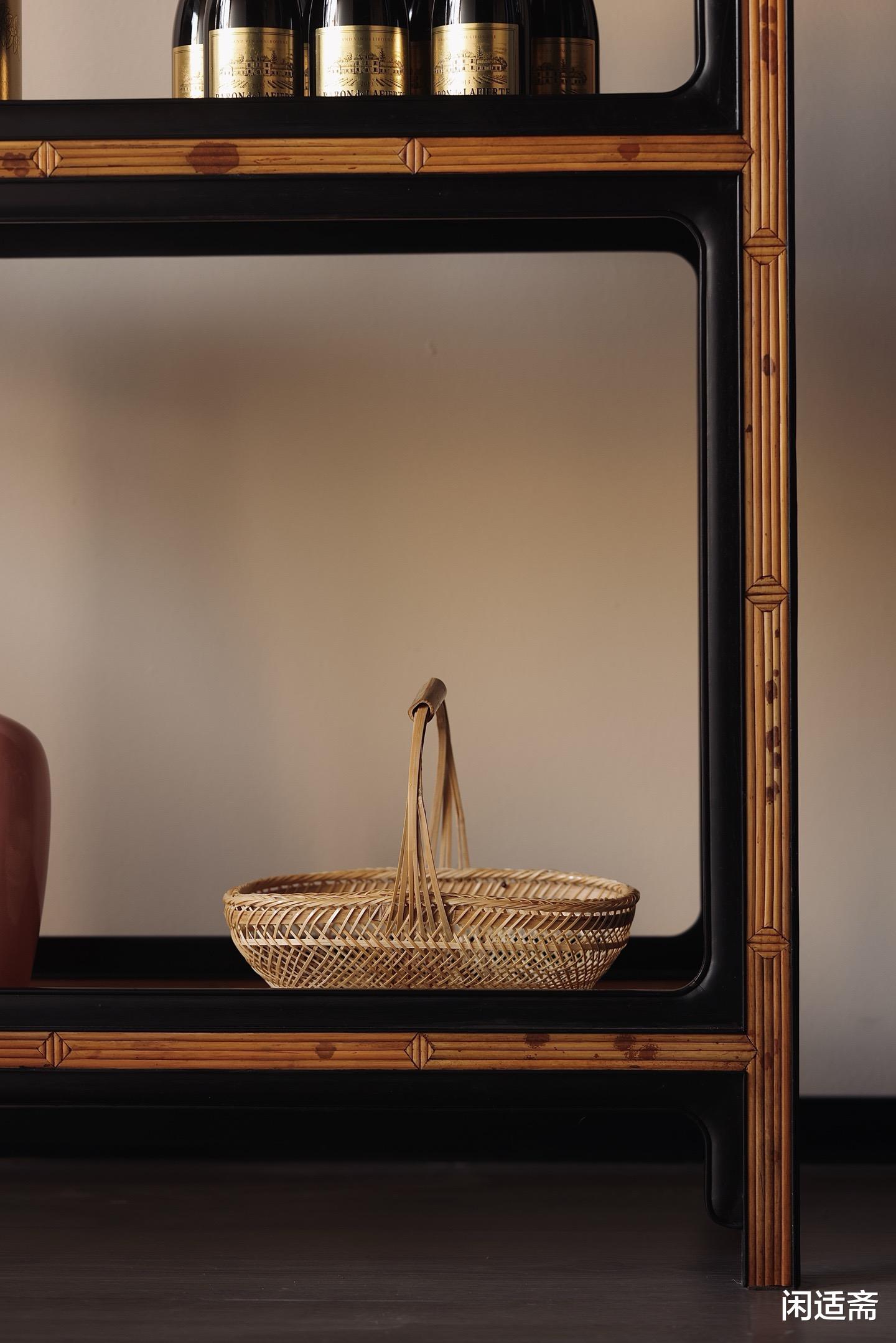 茶水柜,是中式茶室的“点睛之器”,既要承载茶器、茶饼的实用功能,又需契合品茗空间的雅致氛围。这件以紫光檀、湘妃竹、缅甸花梨三材合璧打造的茶水柜,打破单一材质的局限,将硬木的沉敛与竹材的清劲相融,全敞架格的设计既满足置物需求,又让三材之美直观呈现,成为茶室中兼具实用价值与艺术格调的经典器物。