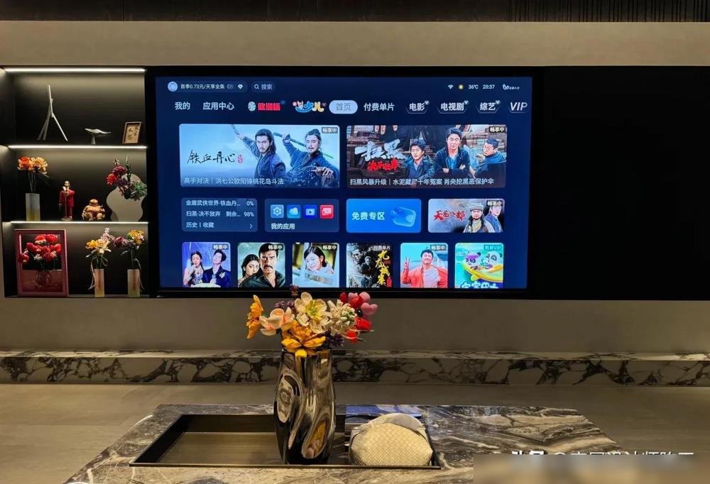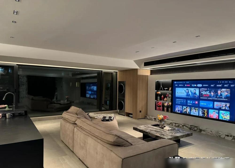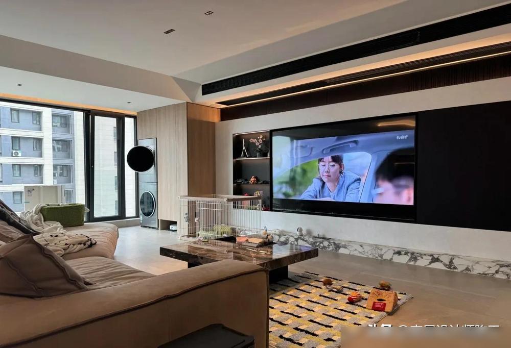电视墙用石膏板造型,内嵌电视,底下配岩板地台。这种做法简洁,不容易过时。比那些复杂的花纹背景墙耐看。85寸电视挂上去,大气是足够了。