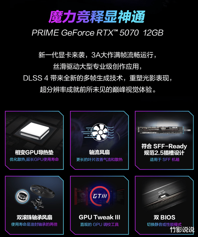 在显卡方面,ROG 魔霸 9X 搭载英伟达GeForce RTX5070,拥有12GB大显存,凭借先进的渲染技术与大显存优势,为用户带来前所未有的性能提升与画质表现。它采用的全新Blackwell架构,搭载第五代Tensor Core和第四代RT Core,配合 DLSS 4 技术,在创作场景中可提升素材预览的流畅度,在游戏场景中则支持光追,能兼顾高帧率与高画质,特别加持的相变GPU导热垫,还进一步优化了散热能力,让玩家和创作者都能获得 “高效 + 优质” 的双重体验。