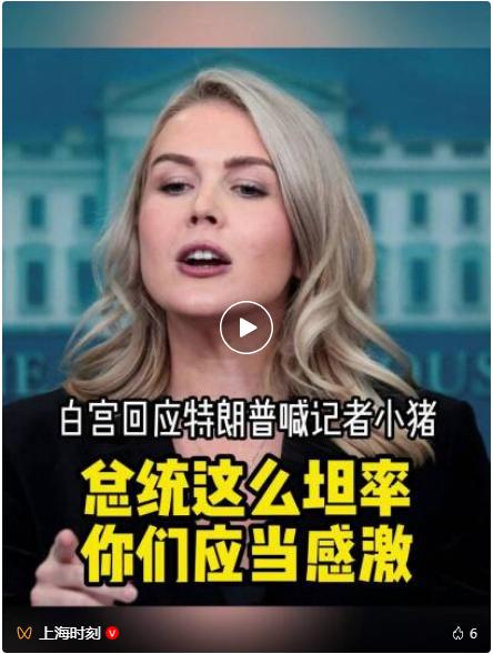 当地时间20日,当有记者就美国总统称呼女记者“小猪”的事件提问时,白宫新闻秘书莱维特辩称特朗普这是坦率。