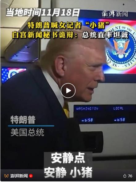 特朗普随即称该记者“小猪”。 白宫新闻秘书回应称,“总统直率”。