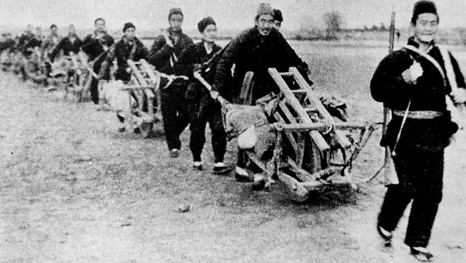 贺老总紧急调来后勤部部长薛兰斌,动员当地村民和学校师生,组成庞大运粮队伍。