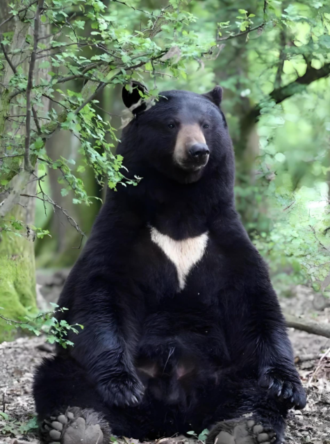 亚洲黑熊最醒目的标志就是胸前白色的“V”字形或月牙形斑纹,像是穿了一件定制款白T恤。