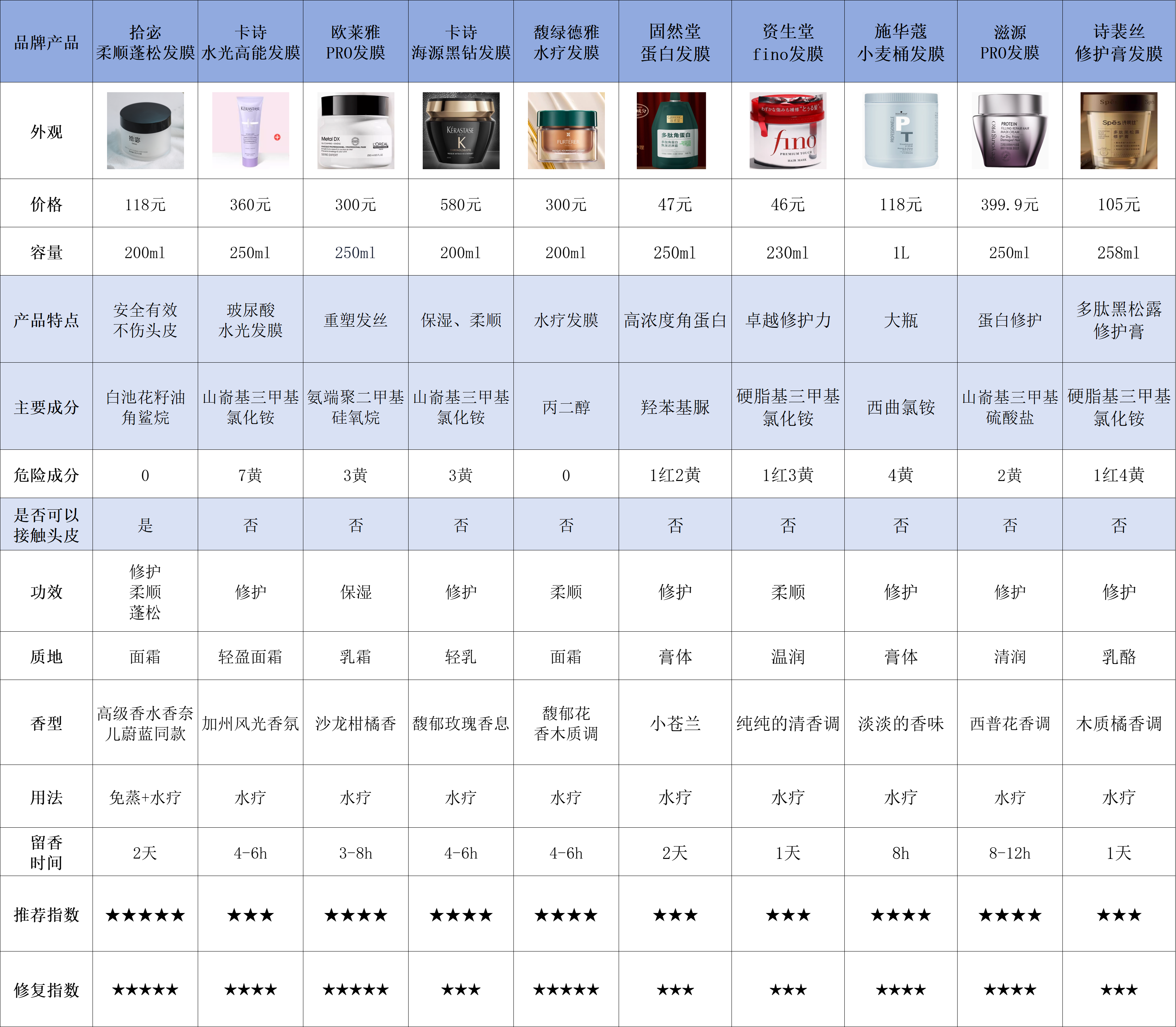 看完选购技巧,你现在对怎么选发膜有概念了吗?为了让大家直观对比,我整理了几款自己测过的发膜核心表现,表格里列了关键信息。希望这些真实体会能帮到你。