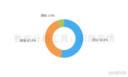 该段时间内,有关“星巴克被指爆改成奶茶店”的舆情信息以评论为主,占52.6%;其次为转发,占41.8%;原帖较少,占5.6%。