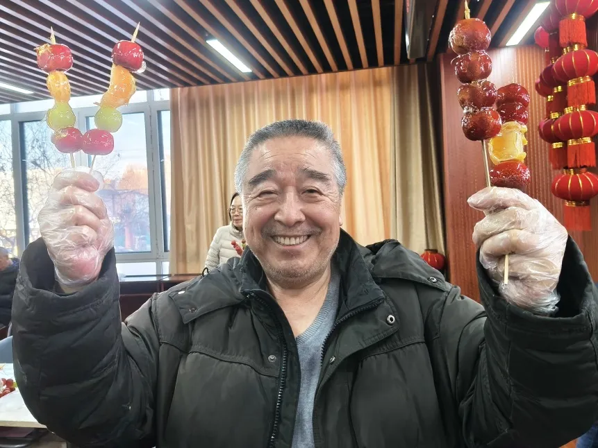 他们小心翼翼地将水果穿在竹签上,再蘸上热腾腾的糖浆,让每一颗都均匀地裹上晶莹剔透的糖衣。制作过程中,大家互相交流心得,欢声笑语不断,气氛温馨融洽。不一会儿,一串串色彩斑斓、香甜可口的冰糖葫芦就制作完成了。居民们品尝着自己的成果,脸上洋溢着幸福的笑容。