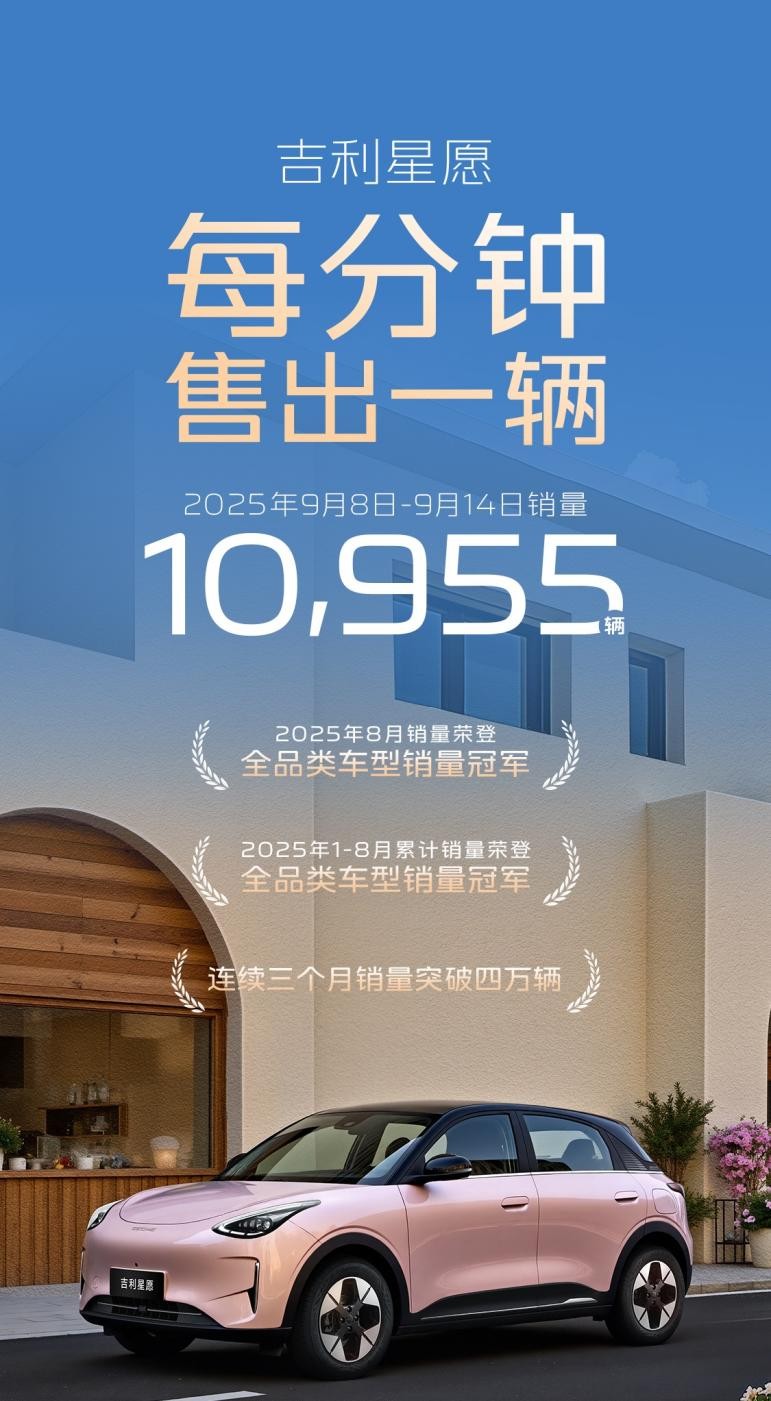 吉利星愿于2025年8月更荣登全品类车型销量冠军,连续三个月销量突破四万辆。根据最新的销量信息显示,星愿再9月8日-14日单周期间内,累计销售108955辆新车。吉利星愿用市场表现证明了自身实力。