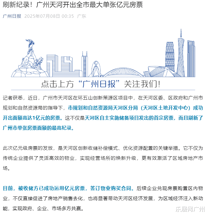 天河的案例极具标志性。今年7月,环五山创新策源区项目中,一家企业拿到了面额高达1亿元的房票。