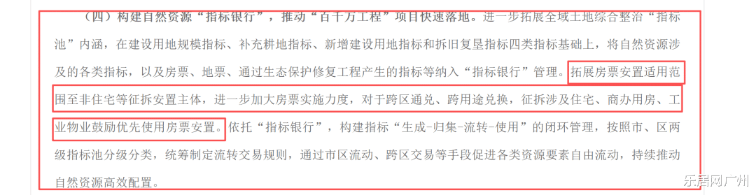 “拓展房票安置适用范围至非住宅等征拆安置主体,推动房票全市跨区通兑、跨用途兑换。”