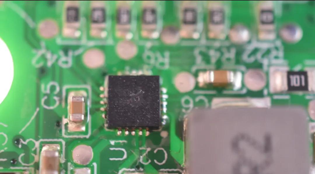 驱动IC芯片丝印做了模糊处理,封装形式为QFN-20。从功能推测该驱动IC在筋膜枪中充当电机控制的“功率指挥官”,位于MCU与功率MOSFET之间。