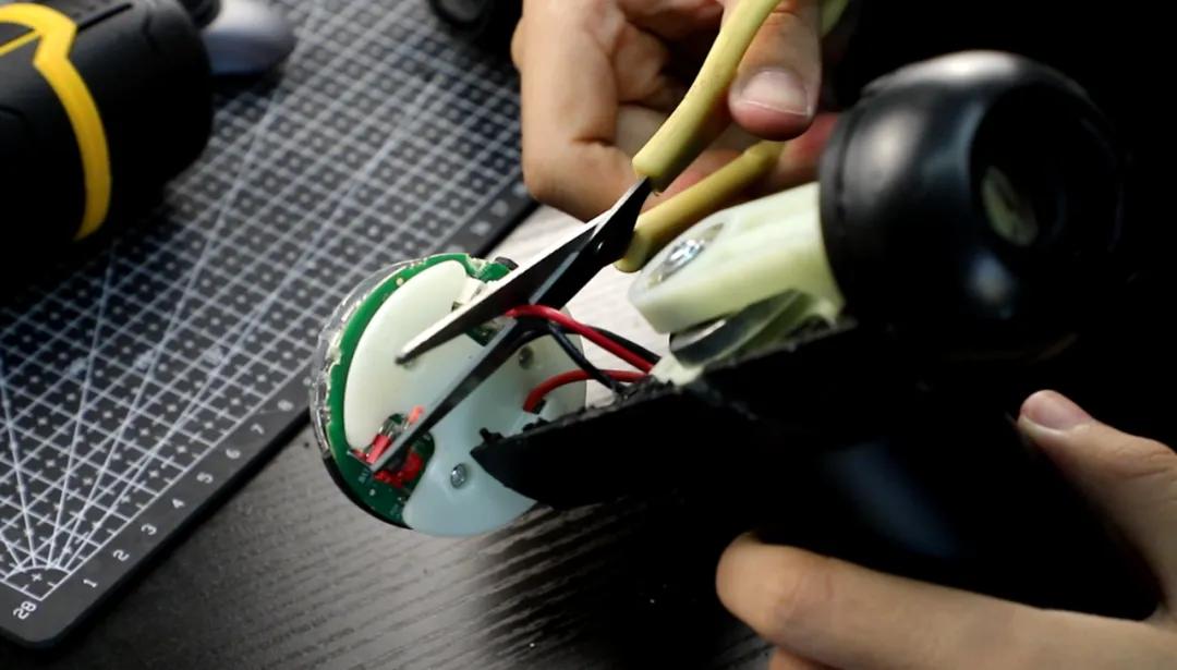 划开后剪断电线拿出锂电保护板。出了点“小意外”。