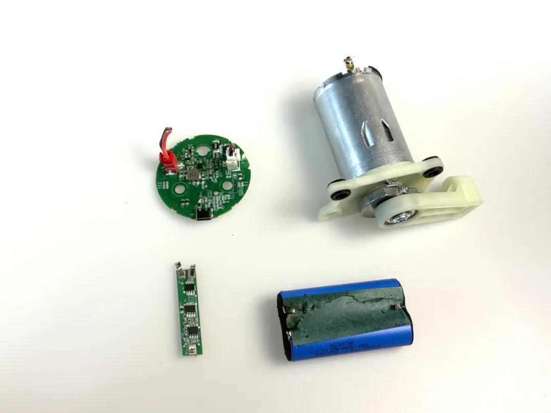 撬开之后可以看到筋膜枪内部全貌,看到整个电驱电控系统的大概。