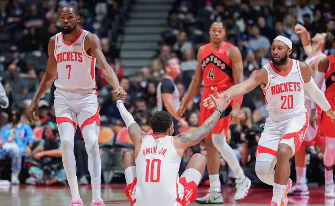 139-121大胜猛龙的比赛中,火箭“超大阵容”展现出碾压级战力,小贾巴里·史密斯16投8中砍下25分5篮板5助攻的全面数据,全场零失误的表现印证了他已是杜兰特加盟后最直接的受益者。这支平均身高超2.06米的阵容初露锋芒,而22岁的史密斯正借此完成蜕变。