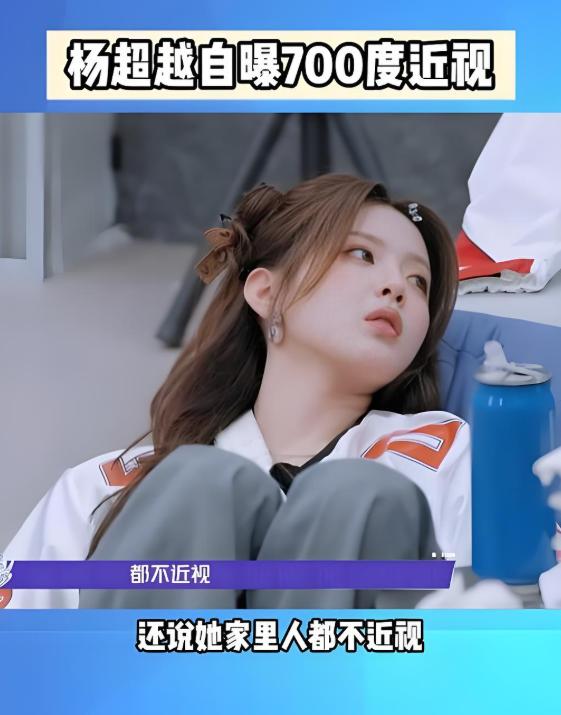 2025年8月,杨超越在节目中透露自己的近视已经700度,家中其他人都不近视,只有自己,或许这也跟他之前缝纫机厂用眼过度的工作有关系。