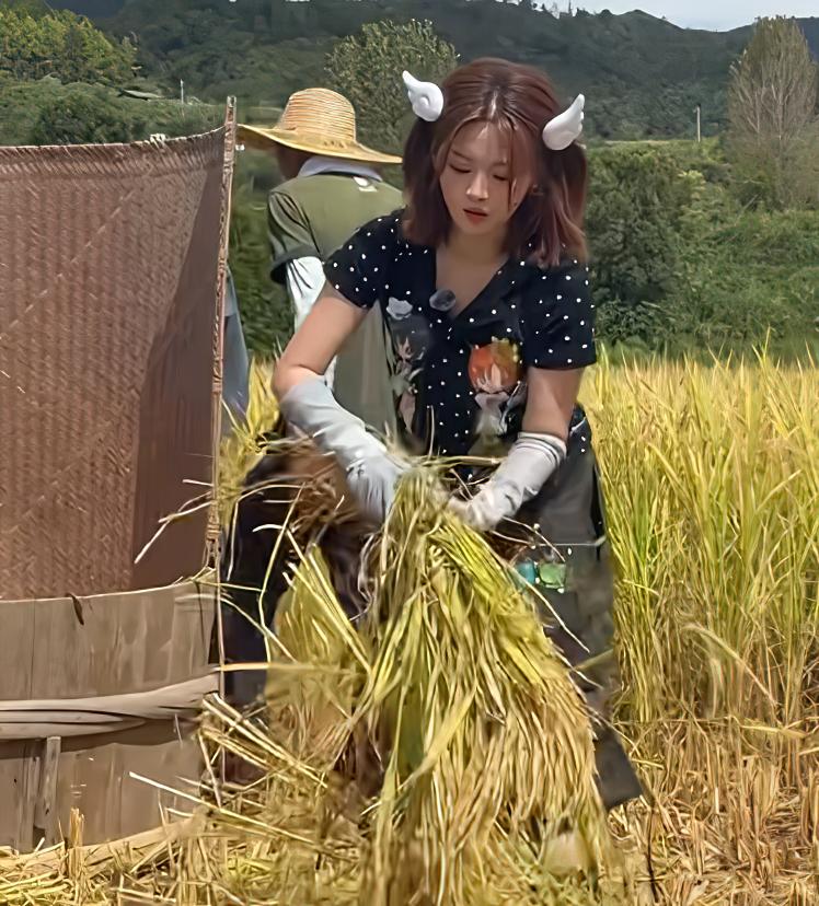 打谷子,敲葵花籽,各种日常农活干得认真又熟练,接地气的完全不像个明星的样子。