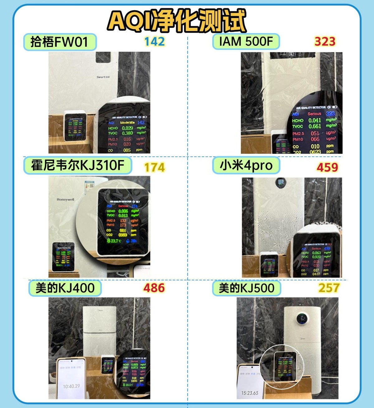 净化一般:IAM 500F、小米4pro、美的KJ400