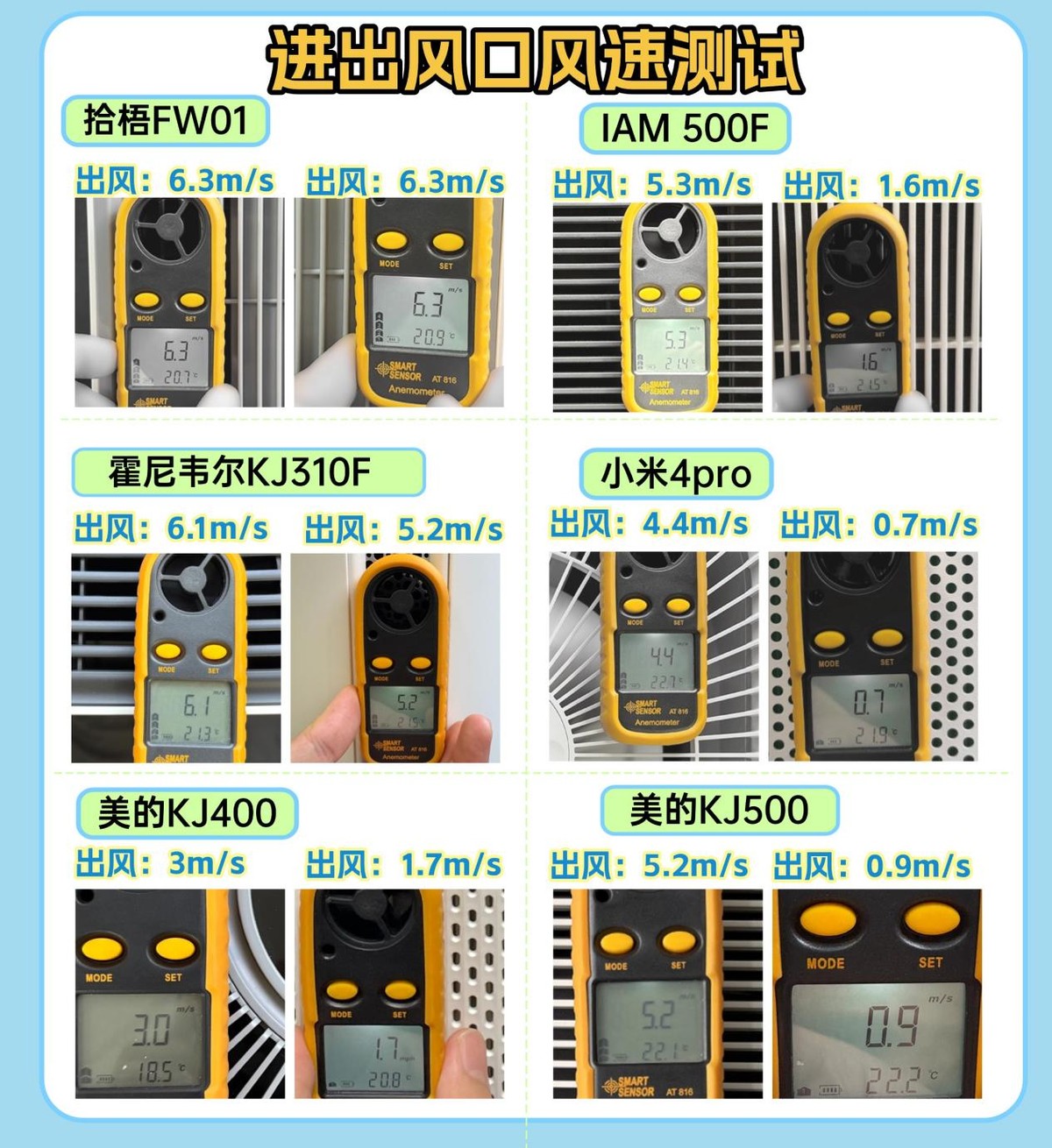 风速中等:霍尼韦尔KJ310F、美的KJ500、IAM 500F