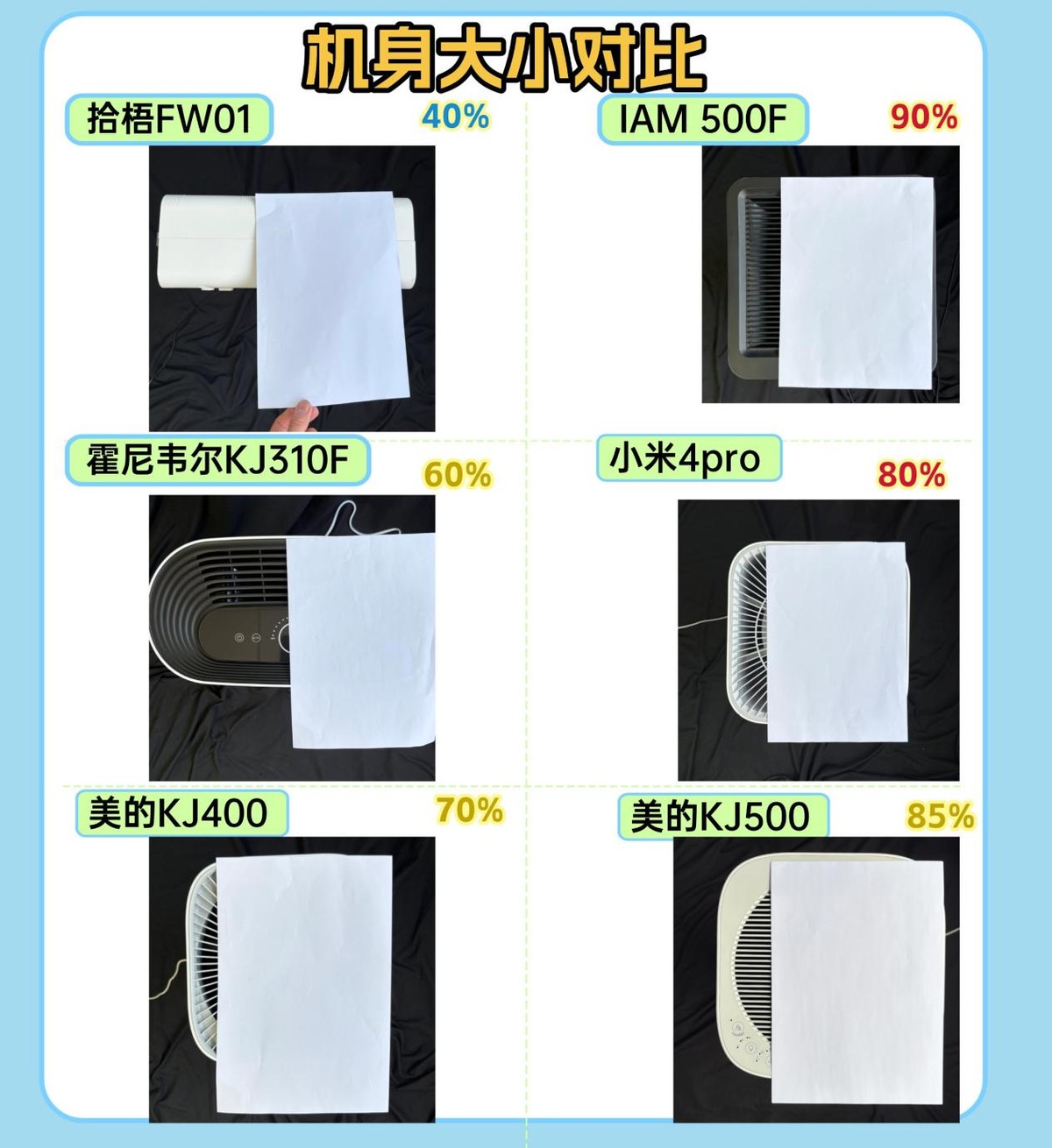 霍尼韦尔KJ310F的覆盖比例为60%,美的KJ400为70%,均属于中等体积落地式机型。这两款产品虽然对空间的要求没有特别苛刻,但放置在角落或靠墙位置仍需一定预留距离,对于小户型或家具密集的房间而言,会造成一定的占用感。