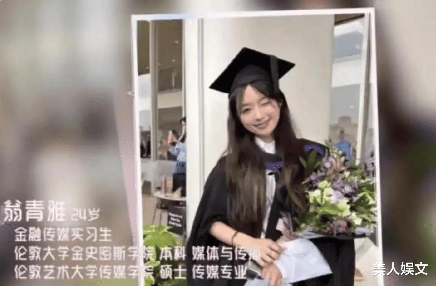 在教育背景上,翁青雅也是相当亮眼。本科毕业于伦敦大学金史密斯学院,主攻媒体与传播,后又在伦敦艺术大学获得传媒硕士学位 。这两所大学在相关领域的排名都相当靠前,为她镀上了一层耀眼的 “学霸” 光环。留学期间,她每年的花费高达 50 万,这一数字让普通家庭望尘莫及,也从侧面反映出她家庭的雄厚财力。