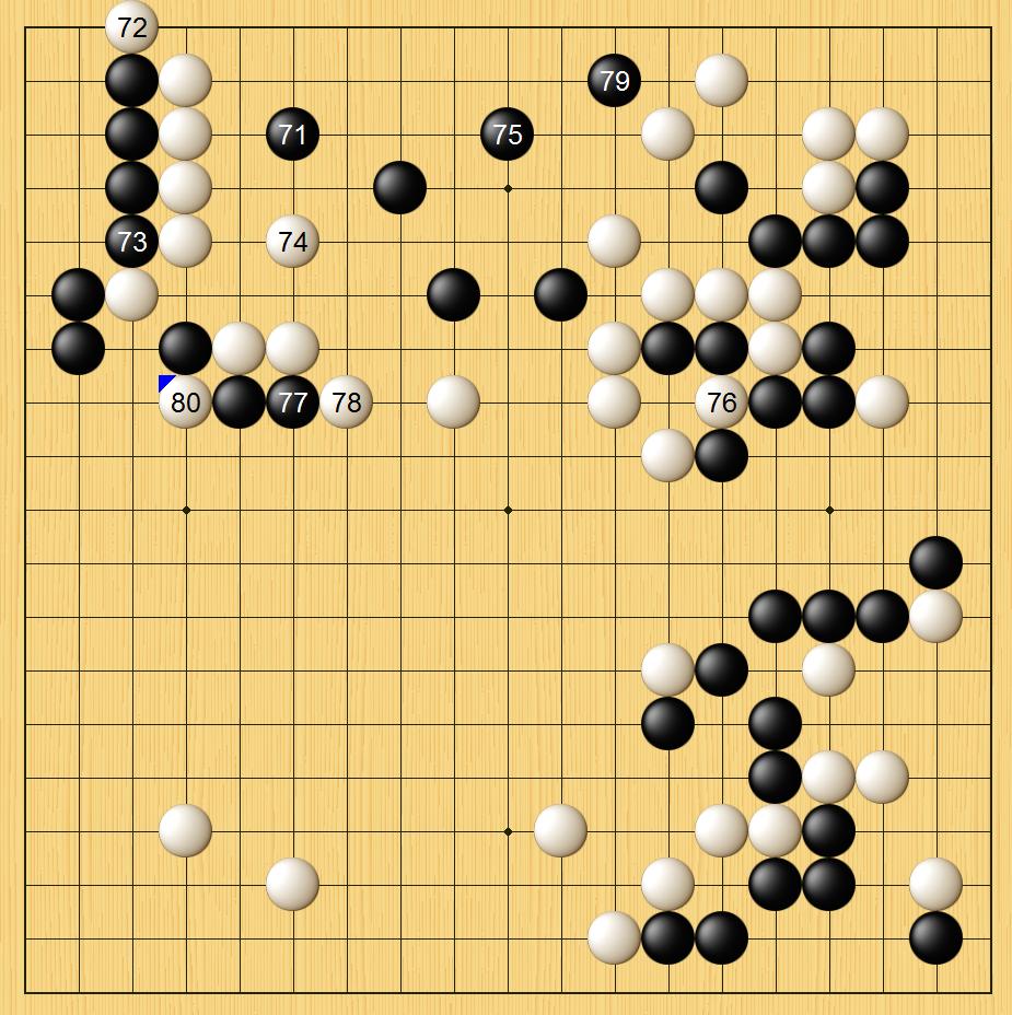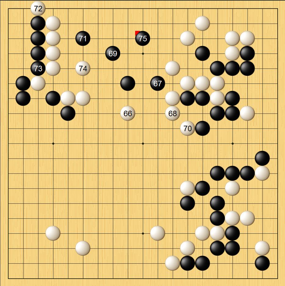 随后双方在上面展开激战,丁浩第74手出现缓手,黑棋第75手做活后优势已经更加明显。