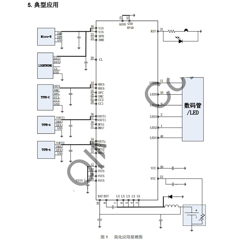 IP5356M的输出功率为22.5W,电池端充电电流最高可达5A,支持18W充电,可满足大容量电池的充电需求。无论是大容量电池的手机,还是需要快速充电的平板电脑,IP5356M均能在较短时间内为设备补充电量。