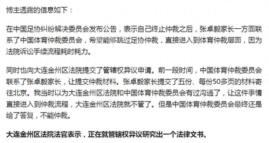 但仲裁结果肯定不能高于法律判决,如果仲裁结果和法院判决不同就被动了,这个时候无论是足协还是体育总局都不敢冒这个险,否则被人骂