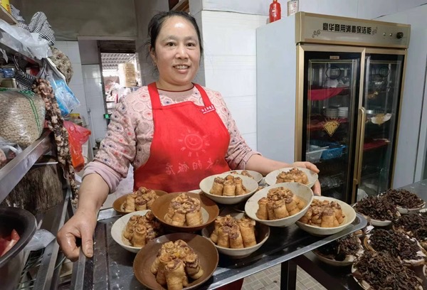 赵见鸿7岁那年发生意外,不幸右眼失明,但他没有被命运打倒,反而用自己的双手,摸索出一条“光明”的小康“致富路”。赵见鸿从19岁开始学厨,学成归来在家乡开起了“红太阳”农家乐,至今已有30余年。除了餐饮,夫妻俩还经营了见泓水果种植专业合作社,专门在饭店辟出一个农副产品展示台,真正推动了文农旅融合,与乡亲们共同致富奔小康。