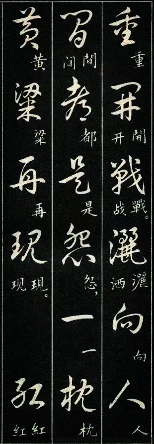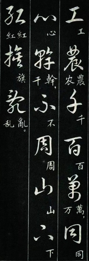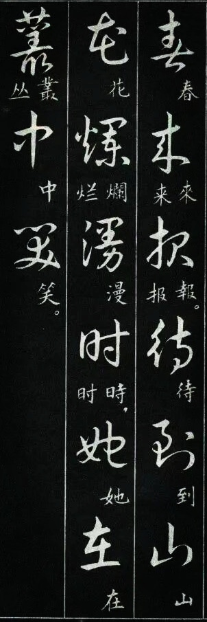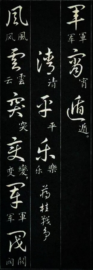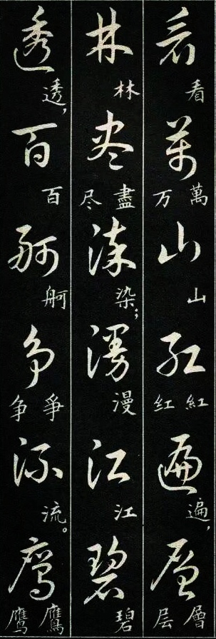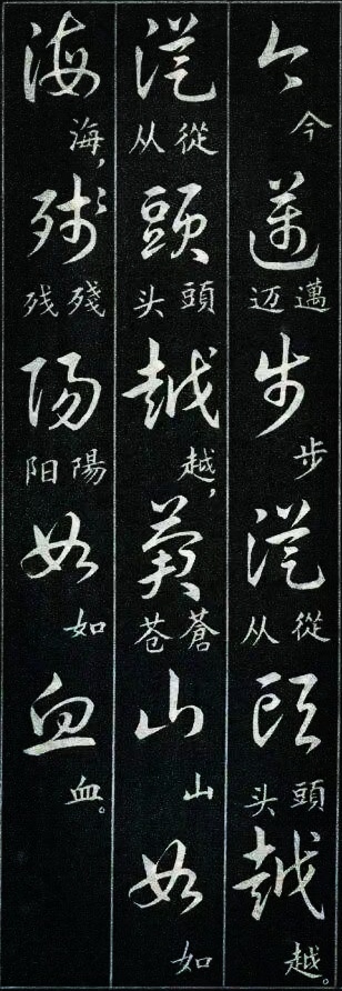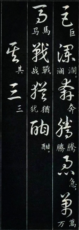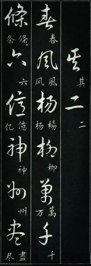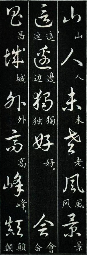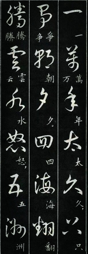 学过草书的书友都有过这样的体会:一开始学草书,我们很容易被那些写得龙飞凤舞的风格吸引。尤其是现在各种大型的书法展览中,大多数草书类的参展作品都是这种风格。那种视觉的震撼总是能吸引到我们,让我们也忍不住想拿起笔来试一试,但是结果总是事与愿违的,无论怎么写就是写不像,其实这是意料之中的事,因为草书的学习绝没有那么简单。对于想学草书的书友来说,这种龙飞凤舞式的写法当然是我们的最爱,不过我们如果多了解一下就会发现,其实草书的写法远不止这么一种,就像下图这种标准一点的写法,写出来也会很好看。
