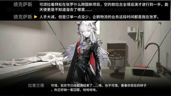 首先登场的是社畜德克萨斯和她那些摸鱼的工友们,有意思的是提到了能天使不知道跑哪去了,可能和能天使拉特兰的剧情有关?是不是可以认为异格阿能已经在路上了。