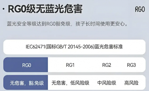 有害蓝光能够直接穿透晶状体抵达视网膜,对视力造成不可逆的损害,如白内障和黄斑病变等。长期暴露在有害蓝光严重的环境中容易引发视疲劳,同时,它还可能抑制褪黑激素的分泌,影响睡眠质量。因此,在选择台灯时,推荐选择RG0豁免级的产品,将伤害降到最低。