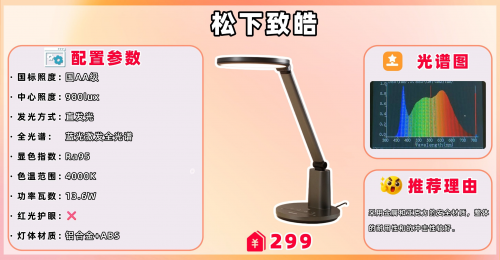 推荐理由:显色指数为Ra95,能够还原物体的真实色彩,可以更好地识别细节。
