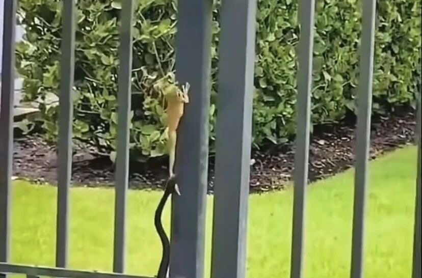 它没有任何放弃的念头,而是一直向上爬,一直疯狂地蹬腿,毕竟只要稍有松懈,那么自己就成了蛇的一部分,此时的蛇也是想要吃上这口肉,它已经好久没有吃上这么肥美的青蛙,也是使劲的咬住青蛙!