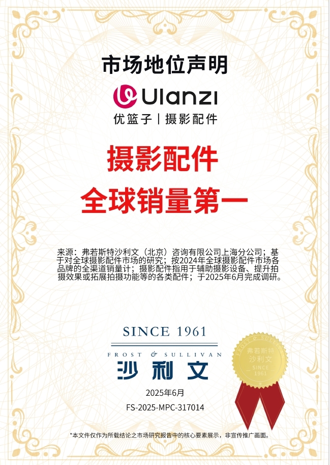 近日,唯迹科技创始人邹青分享了企业十年成长背后的故事与成果。公司先后孵化并运营优篮子Ulanzi、FALCAM小隼两大品牌,又于 2025 年 9 月成功收购美国知名摄影配件品牌 JOBY,构建起覆盖不同定位的多品牌矩阵。其中,核心品牌优篮子Ulanzi 表现尤为突出,在 2025 年 6 月获得Frost & Sullivan认证的 “全球摄影配件销量第一(2024)” 的荣誉。如今,唯迹科技已稳居全球摄影配件行业领军地位。