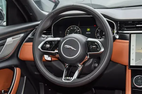 核心的亮点自然是捷豹标志性的设计语言,有一个雪茄式的车身线条,然后搭配点阵式的格栅,看上去确实是比较有气场的。
