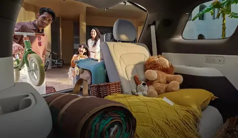 全车49处储物空间,小到口红、钥匙,大到孩子的绘本、老人的拐杖,都有地方放