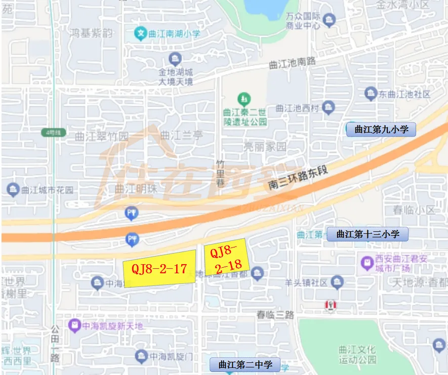 这2宗地位于发展成熟的曲江二期,地块所在板块近年来新房供地非常稀少。位置上,这2宗地靠近南三环,周边交通非常便利,南三环、航天大道、地铁4号线、地铁8号线等纵横交错。周边曲江十三小学、曲江二中、曲江文化运动公园、秦二世陵遗址公园、南湖、金辉广场等配套完善环伺,生活氛围成熟。