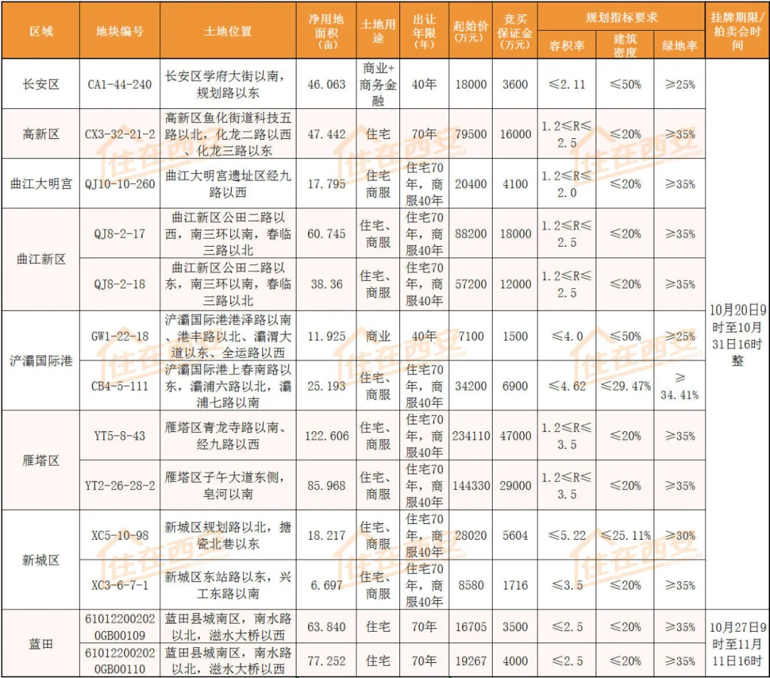 9月30日,西安共计13宗622.103亩开发用地出让,总起始价约75.56亿元!