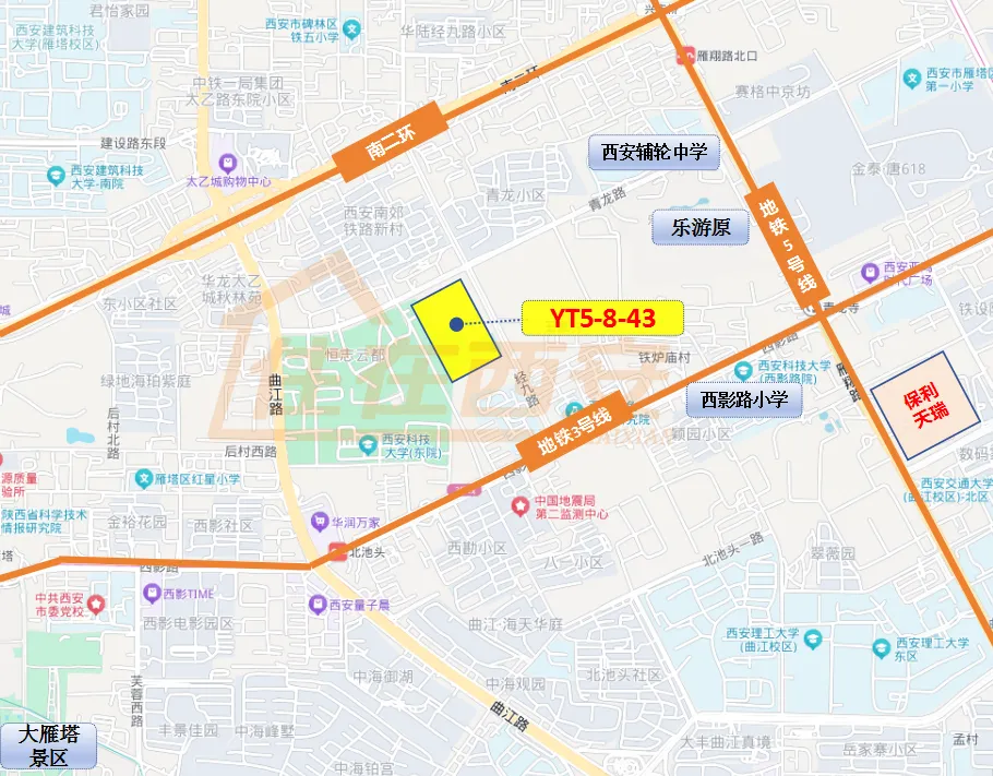 该地块地块面积超百亩,又位于雁塔区青龙寺板块,地块本身条件及位置非常显眼。地块距离南二环近,周边曲江路、雁翔路、地铁3号线、5号线等环绕,出行便利。周边西影路小学、辅轮中学、太乙城等配套完善。