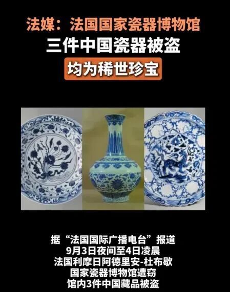 啊呸!明明上个月,法国国家瓷器博物馆三件中国瓷器被盗,总价值人民币7900万元。