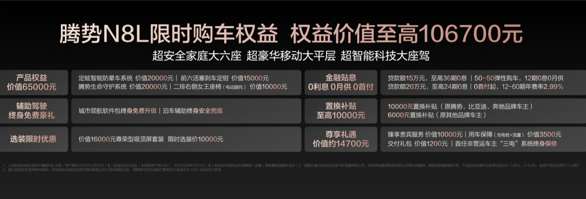 #腾势N8L# 纯纯就是#一台家人全票通过的车#,把一家人所需的方方面面都照顾到了。而且还有各种限时权益,并且11.30前下订用户兜底购置税