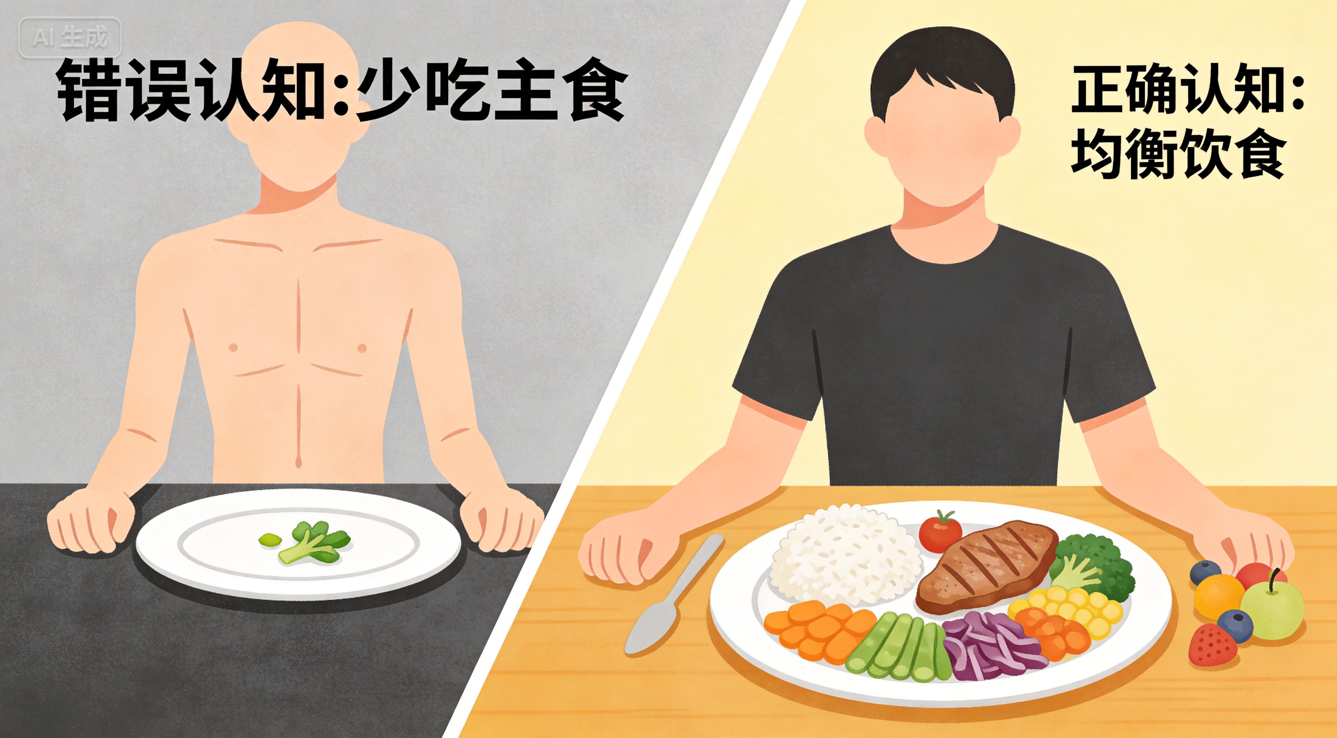 新手最常见的三个认知误区误区一:主食是万恶之源,干脆不吃